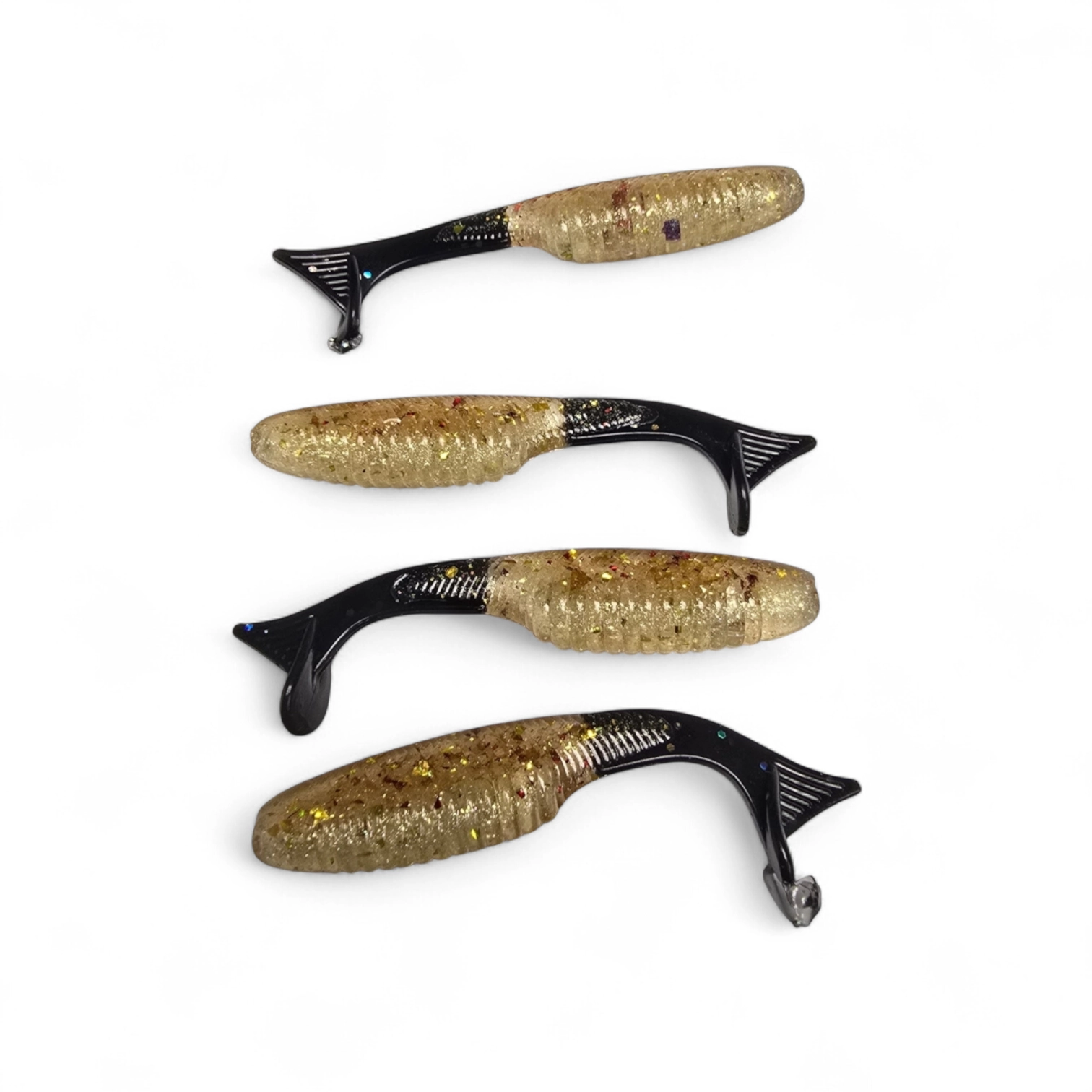 The 2.8 Inch Slouch is a “turned down” boot tail swimbait designed to have a slow methodical back and forth tail action even at the slowest of speeds. The belly of this bait is thick with deep ribbing and the back is thin with a lifelike scale texture.